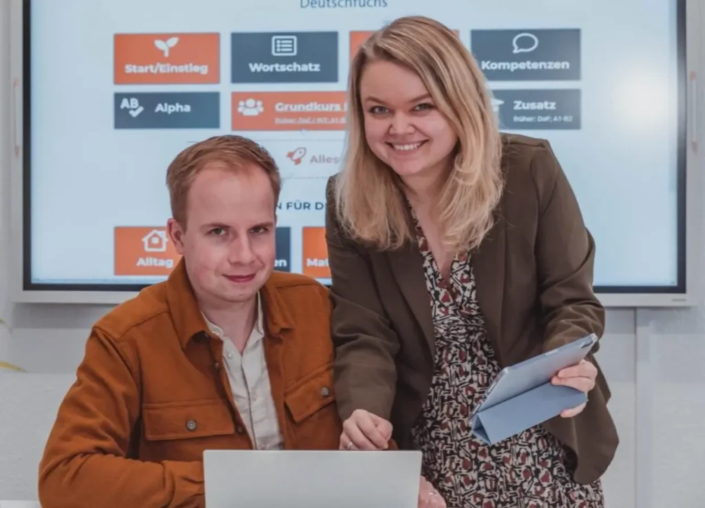 Gemeinsam mit ihrem Mann Simon, der bereits Erfahrung als Gründer eines IT-Unternehmens mitbrachte, setzte sie sich zusammen, um eine Lösung zu entwickeln. So wurde aus einer Unterrichtsidee schließlich Deutschfuchs.
