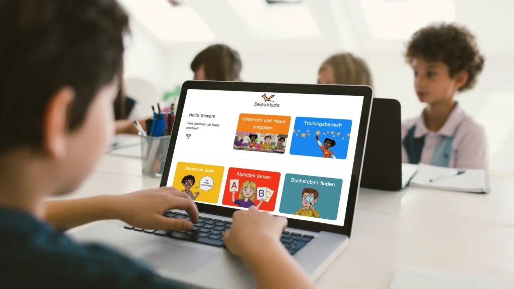 Deutschfuchs ist eine digitale DaZ-Lernplattform für heterogene Lerngruppen. Sie bietet strukturierte Reihen für Schule, Erwachsenenbildung und Fachsprachen sowie mehrsprachige Lerninhalte in 28 Herkunftssprachen. Materialien von der Alphabetisierung bis B2 ermöglichen selbstständiges Lernen. Gleichzeitig behalten Lehrkräfte Lernstände und Fortschritte einfach im Blick, können gezielt differenzieren und werden im Unterricht spürbar entlastet.